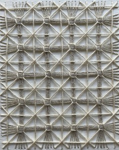 De motieven zijn met ongebleekte katoen, geweven op 250gr Steinbach papier. Bij aankoop zijn de papierafmetingen 13 x 21cm.